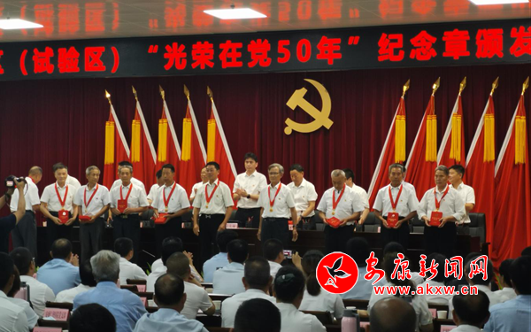 在慶“七一”表彰大會(huì)上,全體參會(huì)黨員面對(duì)鮮紅的黨旗,高舉右手,重溫入黨誓詞,鏗鏘嘹亮的宣誓聲響徹會(huì)場,激蕩人心,昭示著全區(qū)黨員矢志不渝為黨和人民事業(yè)不懈奮斗的堅(jiān)定信念。會(huì)上,為高劍村黨支部等10個(gè)先進(jìn)基層黨組織、王開昌等10名優(yōu)秀黨務(wù)工作者、王天蒼等20名優(yōu)秀共產(chǎn)黨員代表分別頒發(fā)了榮譽(yù)證書,為“光榮在黨五十年”的10名老黨員代表頒發(fā)了紀(jì)念章。