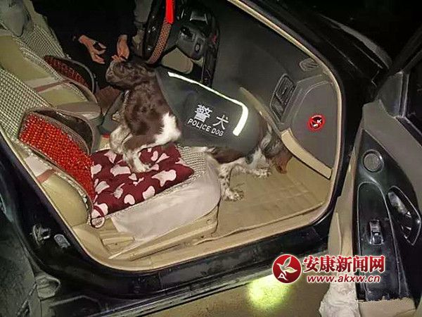“吉祥”對王某的車輛進(jìn)行搜查,車座夾縫內(nèi)、后備箱隱蔽處……“吉祥”在車上三嗅兩聞之后對駕駛室儲物格左側(cè)不停的抓刨,尾巴左右高頻率的搖擺,并時不時的抬頭看著訓(xùn)犬員,顯得特別興奮。訓(xùn)犬員迅速上前檢查,果然發(fā)現(xiàn)了儲物格與前排座椅夾縫隱蔽處的一小包冰毒。民警當(dāng)即帶王某做了尿檢,結(jié)果呈陽性,在證據(jù)面前,王某對其吸食冰毒、在車內(nèi)藏冰毒的違法事實供認(rèn)不諱。目前,違法人員王某已被依法行政拘留。