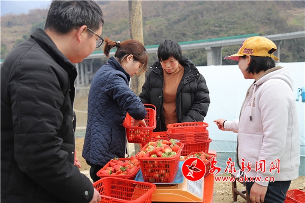 前來采摘草莓的人絡繹不絕。在采摘園區(qū),筆者看到不少游客興高采烈地提著剛采摘的草莓,排隊稱重。4位客人在棚里吃了草莓,覺著口感不錯,就一次買了1000多塊錢的草莓滿載而歸。