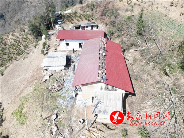 3月16日,無人機拍攝的改造中的嵐皋縣大道河鎮(zhèn)白果坪村農(nóng)村土坯房。