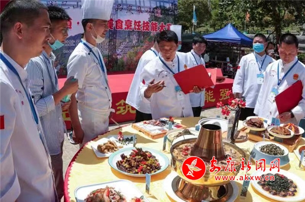 賽事方案出臺(tái)后,12個(gè)鄉(xiāng)鎮(zhèn)5個(gè)縣級(jí)部門組織了380名選手報(bào)名參加預(yù)賽,選拔出中餐熱菜選手50名,每人做兩道熱菜參加決賽,同時(shí)參加20桌宴席比賽。特色小吃參賽選手50人制作50個(gè)小吃參加小吃決賽。在預(yù)賽進(jìn)行過程中市烹飪餐飲行業(yè)協(xié)會(huì)會(huì)長毛朝軍多次前往嵐皋預(yù)賽賽場(chǎng)實(shí)地勘察,提出賽場(chǎng)合理布局建議意見。并在賽前向參賽選手傳授烹飪技能,指導(dǎo)參賽選手優(yōu)化烹飪技術(shù)流程,提高菜品質(zhì)量。秘書長楊紹軍自預(yù)賽開始就住在嵐皋,同縣人社局一起研究確定預(yù)賽評(píng)判人員,確保比賽公開、公平、公正。楊紹軍還先后多次應(yīng)邀參加人社局組織的落實(shí)任務(wù)工作會(huì),并且在大賽組委會(huì)工作群里提醒督促工作完成情況,解決比賽中遇到的具體問題。與此同時(shí)還主動(dòng)到7個(gè)鄉(xiāng)鎮(zhèn)3個(gè)部門輔導(dǎo)參賽選手做好參賽作品。他在城關(guān)鎮(zhèn)賽區(qū)品嘗了老街涼面,覺得味道可口,有明顯的地域特色。深受市井百姓喜愛。但仍有改進(jìn)提高空間,他指導(dǎo)參賽選手在原材料、調(diào)味品選擇上優(yōu)中選優(yōu),幫助指導(dǎo)餐具選擇、擺盤設(shè)計(jì)等工作,由于他細(xì)致的指導(dǎo),參賽選手用心制作。結(jié)果這道小吃在比賽中一路向前,獲得嵐皋味道“十大名小吃”第一的好成績,獲得了特色小吃金獎(jiǎng),參賽選手張賢彬也獲得“嵐皋名廚”榮譽(yù)稱號(hào)。