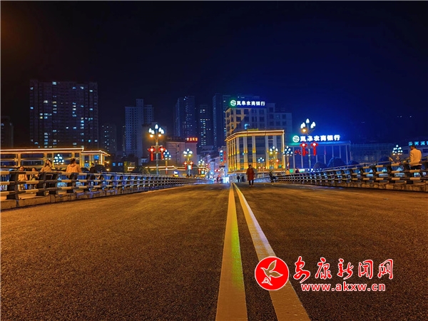 “白改黑”后的嵐皋縣城肖家壩大橋及夜景。陳延安/攝
