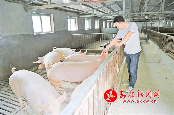 祝振珊如同往日一樣,早早起床洗漱完畢后,就一頭扎進(jìn)豬舍忙碌起來。打掃圈舍衛(wèi)生,給豬喂食,望著500多頭健壯“豬寶貝”,他的身上充滿干勁。