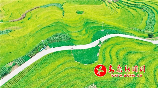 在嵐皋縣官元鎮(zhèn),綿延如帶的梯田里,水稻綠意盎然,郁郁蔥蔥,仿佛為大地披上了綠裝。雨后初霽,層層梯田在云霧中若隱若現(xiàn),構(gòu)成了一幅優(yōu)美的田園畫卷,美不勝收。