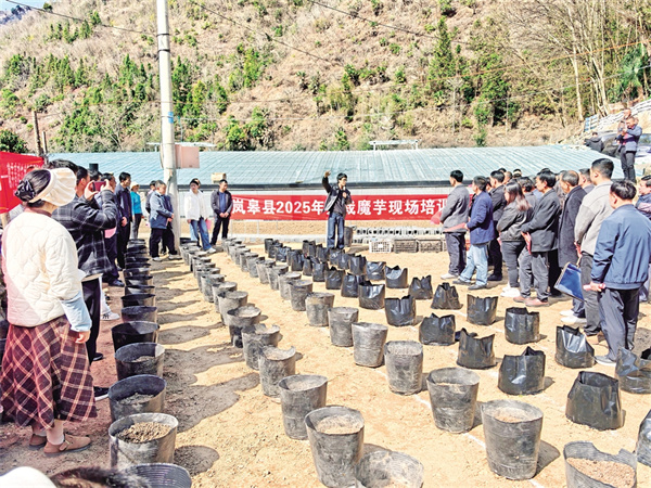 本網(wǎng)訊(通訊員 張?zhí)毂?胡興建)近日,在嵐皋縣藺河鎮(zhèn)蔣家關(guān)村五組藺佳源魔芋種植基地,一個(gè)個(gè)黑色塑料種植袋間隔有序地整齊擺放,隨著專(zhuān)家教授的現(xiàn)場(chǎng)講解,這種袋栽魔芋的新模式,讓前來(lái)參加2025年嵐皋縣魔芋現(xiàn)場(chǎng)培訓(xùn)會(huì)的百余名干部群眾眼前為之一亮。