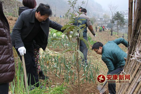 3月11日,嵐皋縣直機(jī)關(guān)300余人參加義務(wù)植樹(shù)活動(dòng),當(dāng)天栽植枇杷樹(shù)1400棵。該縣計(jì)劃今年綠化造林6.2萬(wàn)畝,其中春季造林達(dá)到3萬(wàn)畝以上,實(shí)現(xiàn)過(guò)半目標(biāo)。周湑堯 攝……