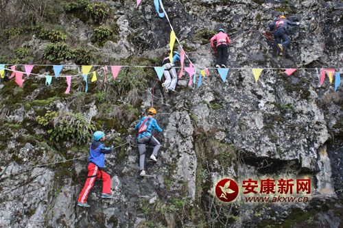 安康新網(wǎng)訊 (實(shí)習(xí)記者 羅紀(jì)旬 通訊員 張昊 王湘)4月27日,嵐皋舉行南宮山首屆飛拉達(dá)攀巖公開賽,來(lái)自省內(nèi)的16支戶外極限運(yùn)動(dòng)團(tuán)隊(duì)在南宮山上,激烈角逐,挑戰(zhàn)極限……