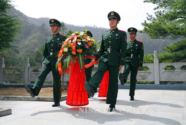 武警官兵向革命烈士敬獻(xiàn)花籃