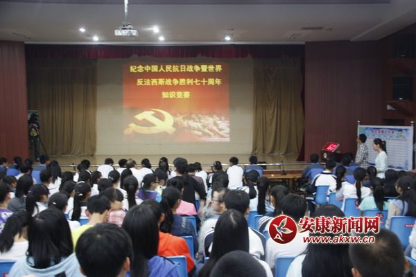 安康新聞網(wǎng)訊 9月11日晚上,寧陜中學(xué)階梯教室燈光明亮、人頭攢動(dòng),中國(guó)人民抗日戰(zhàn)爭(zhēng)暨世界反法西斯戰(zhàn)爭(zhēng)勝利70周年知識(shí)競(jìng)賽正在有序進(jìn)行,來自高二、高三年級(jí)組文科班全體師生三百人參與此活動(dòng)。