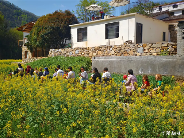 漁灣村位于寧陜縣城以南,距離縣城約11公里。這里依山傍水,景色秀美,已建成鹿柴山集精品民宿、稻田小火車等項(xiàng)目,并打造出朱鹮保育稻田、陜南鄉(xiāng)村田園等自然人文景致,有著豐富的生態(tài)資源和深厚的文化底蘊(yùn)。清明時(shí)節(jié),正是油菜花盛開的季節(jié),田間地頭金黃一片,吸引了眾多游客前來觀賞。