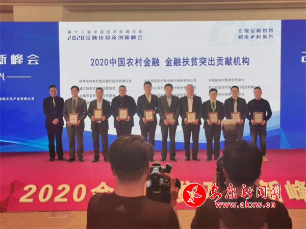 本網(wǎng)訊(通訊員 田華)11月21日,由國務(wù)院發(fā)展研究中心、中國扶貧基金會共同指導(dǎo),中國經(jīng)濟時報社、國研經(jīng)濟研究院主辦的第十二屆中國經(jīng)濟前瞻論壇專題論壇—2020金融扶貧及創(chuàng)新峰會在國家會議中心舉行。來自全國各省、區(qū)、市百余家農(nóng)商銀行、農(nóng)信聯(lián)社代表等共計200人參加。平利農(nóng)商銀行在全國500家金融機構(gòu)參選過程中,脫穎而出,榮獲“2020年中國農(nóng)村金融 金融扶貧突出貢獻機構(gòu)”榮譽稱號。