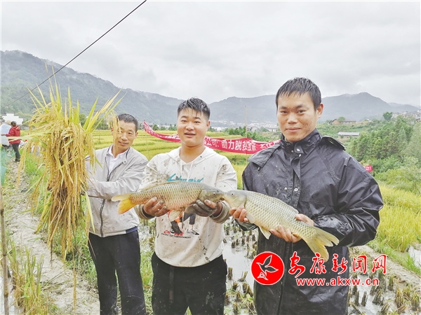 2019年開(kāi)始,平利縣大貴鎮(zhèn)嘉峪寺村大力發(fā)展集體經(jīng)濟(jì),當(dāng)?shù)啬苋送蹉y在充分挖掘本地資源優(yōu)勢(shì)的基礎(chǔ)上,成立了寶銀種養(yǎng)殖專業(yè)合作社,依托良好的生態(tài)環(huán)境和區(qū)位優(yōu)勢(shì),加之優(yōu)質(zhì)的山泉水,流轉(zhuǎn)土地種植500畝富硒水稻。經(jīng)過(guò)一年的發(fā)展,當(dāng)年便收獲了20萬(wàn)公斤稻谷,也贏得了廣闊的市場(chǎng)。2020年為進(jìn)一步增加收入,王銀便萌生了養(yǎng)稻花魚(yú)的想法,組織寶銀種養(yǎng)殖農(nóng)民專業(yè)合作社采取“合作社+貧困戶”的模式,通過(guò)統(tǒng)一品種、統(tǒng)一種植、統(tǒng)一管理等方式,開(kāi)啟“一田兩用、一水雙收”的發(fā)展模式,養(yǎng)殖生態(tài)稻花魚(yú),陸續(xù)投放了20萬(wàn)尾魚(yú)苗。稻因魚(yú)而優(yōu),魚(yú)因稻而貴。“稻田里養(yǎng)了魚(yú),就不用農(nóng)藥和除草劑了,魚(yú)會(huì)吃掉稻田中的害蟲(chóng)、雜草、掉落的稻花,排出的糞便又能成為水稻生長(zhǎng)的肥料。”王銀說(shuō),稻田養(yǎng)魚(yú)實(shí)現(xiàn)了“一水兩用、一田多收、稻魚(yú)雙贏”。割稻時(shí)節(jié),稻香魚(yú)肥慶豐收,稻田里農(nóng)民兄弟們忙著收割打谷、捉魚(yú),田埂旁搭起的臨時(shí)小舞臺(tái)上載歌載舞,歡聲笑語(yǔ)四處洋溢。