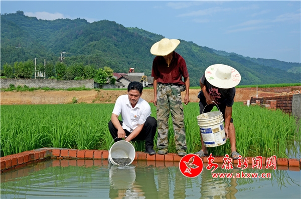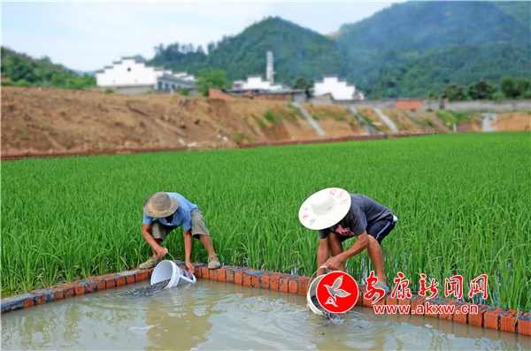 “我家去年種了3畝水稻,投放了50斤魚(yú)苗,養(yǎng)大后以40元一斤的價(jià)格賣(mài)了2000多元,其余的都分給親戚朋友嘗鮮了。我看到效果不錯(cuò),今年便多種了兩畝水稻,準(zhǔn)備多投放一些魚(yú)苗。”領(lǐng)了4桶魚(yú)苗的村民賈文林一邊往自家田里放著魚(yú)苗一邊說(shuō)道。