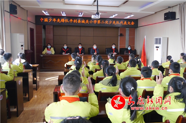 會上,上屆少工委代表向大會作報(bào)告,會議選舉產(chǎn)生了平利縣城關(guān)小學(xué)第二屆少工委委員、主任和副主任,新當(dāng)選的少工委委員代表進(jìn)行講話。大會完成各項(xiàng)任務(wù)后,少先隊(duì)員們呼號,全體代表再一次向隊(duì)旗敬禮后,儀式結(jié)束。