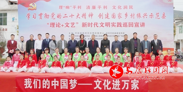 理論+文藝“飛入尋常百姓家”。陽春三月,“學(xué)習(xí)宣傳貫徹黨的二十大精神 奮力創(chuàng)建國家鄉(xiāng)村振興示范縣”理論+文藝新時(shí)代文明實(shí)踐巡回宣講啟動(dòng)儀式在大貴鎮(zhèn)后灣村成功舉行,活動(dòng)現(xiàn)場,《美麗中國》歡快舞動(dòng),《茶香春早》悅耳動(dòng)聽,《鄉(xiāng)村處處話振興》娓娓道來,《沁園春·雪》雄邁豪放,理論宣講貫穿其中,一場視聽盛宴下來,群眾對發(fā)展的信心、對理論、政策的學(xué)習(xí)熱情更加高漲。將黨的二十大精神精準(zhǔn)地轉(zhuǎn)化為接地氣的文藝節(jié)目,讓群眾聽得清、聽得懂、聽得進(jìn)、用得上,收獲滿滿。