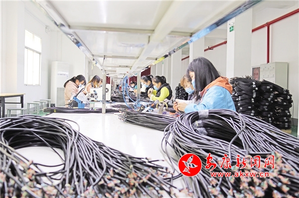 通過加工電子線束,黃海英們的生活得到了顯著改善。“以前送完孩子上學(xué),就沒事干了。自從我們這里有了這家電子線束加工廠,每天趁著娃上學(xué)后來這里做工,一月能掙3500多元,隨著技術(shù)熟練工資還會漲,日子越來越有奔頭了。”黃海英說。