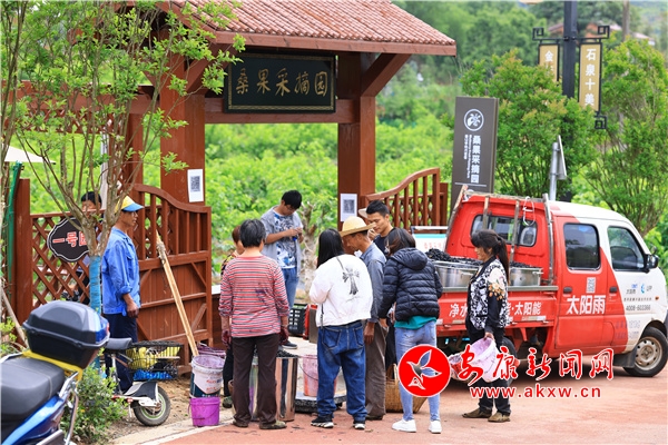 5月18日,石泉縣池河鎮(zhèn)明星村桑果采摘園門(mén)口,桑農(nóng)們正在將新鮮采摘的桑葚進(jìn)行統(tǒng)一稱(chēng)重售賣(mài)。據(jù)了解,每日可采摘桑葚1000余斤,每斤售價(jià)3元,有效增加了蠶農(nóng)收入,助推鄉(xiāng)村振興。 (圖文/汪龍濤 劉丹)TkN安康新聞網(wǎng)