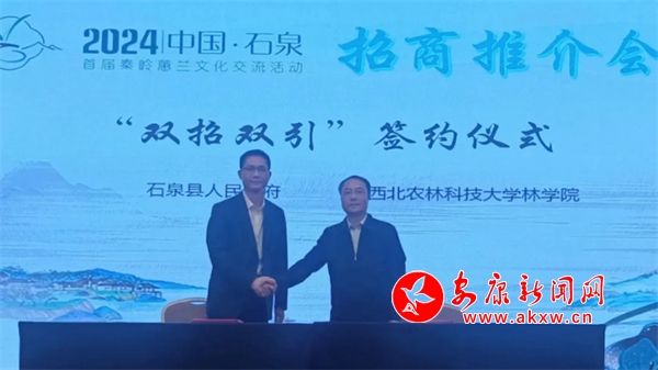 △ 石泉縣人民政府同西北農(nóng)林科技大學(xué)簽訂雙招雙引合作協(xié)議