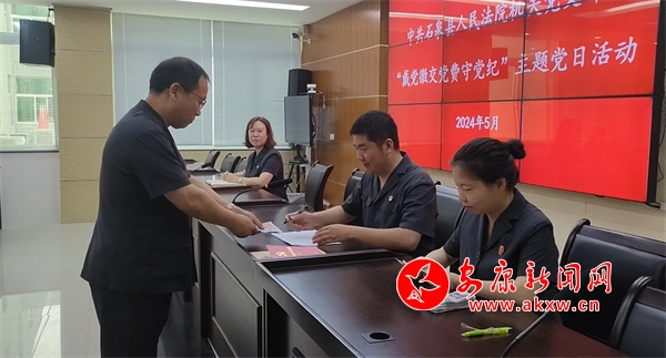本網(wǎng)訊(通訊員 趙宇) 為進一步強化黨員意識,增強黨員的歸屬感和榮譽感,近日,石泉法院組織開展“戴黨徽交黨費守黨紀”主題黨日活動,院黨組書記、院長蔣曉安以普通黨員身份,帶頭繳納黨費。