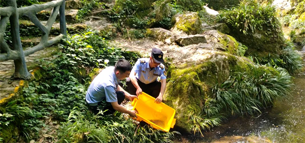 接到疑似“娃娃魚”的動(dòng)物后,民警迅速聯(lián)系石泉縣農(nóng)業(yè)農(nóng)村局協(xié)助救助。經(jīng)縣農(nóng)業(yè)農(nóng)村局工作人員比對(duì)確認(rèn),該動(dòng)物正是“娃娃魚”,又名大鯢,屬國家二級(jí)重點(diǎn)保護(hù)野生動(dòng)物。5月16日上午,民警聯(lián)合縣農(nóng)業(yè)農(nóng)村局工作人員,在一處植被資源豐富的水源地上游,將“娃娃魚”放生回歸大自然。