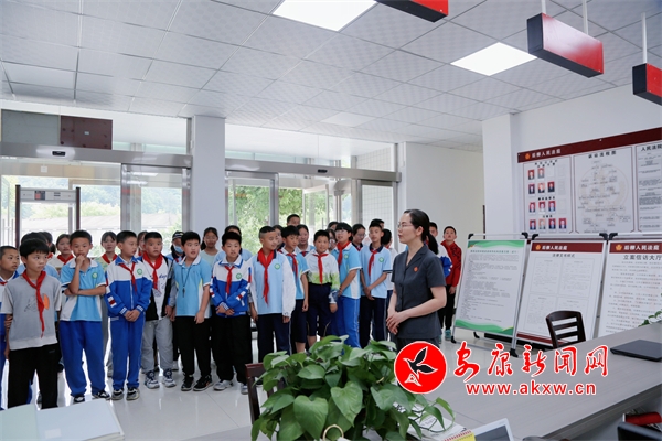 本網(wǎng)訊(通訊員 潘蕾蕾)為加強(qiáng)對(duì)未成年人的法治宣傳教育,促進(jìn)青少年健康全面發(fā)展,6月3日,石泉法院后柳法庭舉辦“‘未’你而來 法護(hù)成長“法庭開放日”活動(dòng),邀請(qǐng)后柳鎮(zhèn)中心小學(xué)40余名師生走進(jìn)法庭,參觀訴訟服務(wù)大廳、審判法庭,敲法槌、“客串”法官,“零距離”感受法庭的莊嚴(yán)。