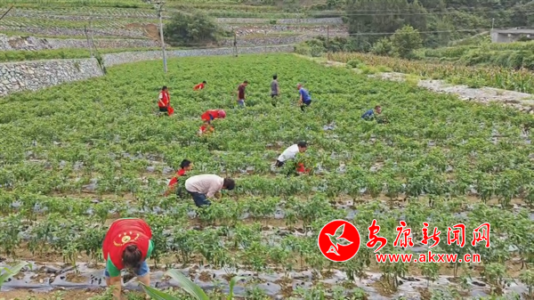 在他的不懈努力下,2024年初,柏橋村新發(fā)展了預(yù)制菜基地,重點(diǎn)種植辣椒200畝,柏橋村集體合作社全力支持,率先流轉(zhuǎn)土地80畝進(jìn)行規(guī)模化種植。同時(shí),積極動(dòng)員周邊農(nóng)戶參與,通過(guò)土地流轉(zhuǎn)和種植技術(shù)指導(dǎo),成功帶動(dòng)14戶農(nóng)戶種植辣椒120畝,形成了“合作社+農(nóng)戶”的緊密合作模式。