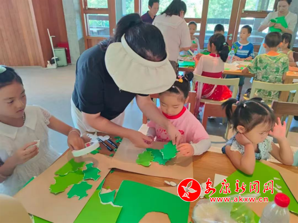溫馨的活動室里,“愛心媽媽”們帶著滿滿的愛與關(guān)懷,與一群可愛的孩子們相聚在一起,孩子們一雙雙充滿期待的眼睛明亮而好奇地緊緊盯著“愛心媽媽”們,“愛心媽媽”溫柔地微笑著,拿起準(zhǔn)備好的彩紙、剪刀、膠水等材料,耐心地向孩子們講解今天的手工制作——蠶寶寶吃桑葉。從如何繪畫蠶寶寶,到怎樣拼剪出立體感的桑葉,“愛心媽媽”們一步步細致地示范著,孩子們?nèi)褙炞⒌伛雎、模仿著,雖然有些孩子一開始還不太熟練,但“愛心媽媽”們始終耐心地在他們身邊,一遍又一遍地重復(fù)著動作,給予鼓勵和引導(dǎo)。漸漸地,孩子們的小手開始靈活起來,他們認真地繪畫、剪裁、粘貼著,不一會兒,一幅幅蠶寶寶吃桑葉的作品就出現(xiàn)在了他們的手中。孩子們看著自己親手創(chuàng)造的作品,臉上綻放出花朵般的笑容。