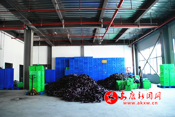 圖為豐產(chǎn)期的紫皮長茄被堆放在倉儲(chǔ)車間