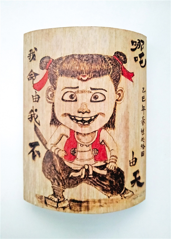 與此同時(shí),在石泉,另一位非遺傳承人也不甘落后,用小小的烙鐵為大家勾勒出了哪吒、申公豹等鮮活的形象。退役軍人楊聰明,身為石泉烙畫非遺代表性傳承人,他微笑著向筆者分享創(chuàng)作初衷:“看到哪吒這個(gè)形象如此火爆,孩子也鬧著讓我畫一個(gè),我便也嘗試著拿起了烙鐵。剛開始畫的時(shí)候比較隨性,畫出效果后再進(jìn)行仔細(xì)修改。我深知,想要塑造出生動(dòng)的形象,必須付出大量的時(shí)間和精力去精雕細(xì)琢。由此我也更加敬佩電影團(tuán)隊(duì),他們的付出和努力不言而喻。我們都是在用自己的方式,向中華國粹致敬!”