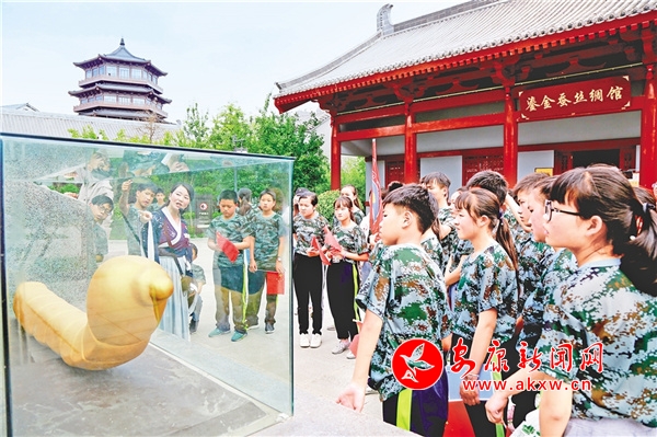 “請(qǐng)大家看,這就是放大了的鎏金銅蠶模型”周末假期,在石泉縣蠶桑博物館內(nèi),來(lái)自外地的游客們正在聽(tīng)取蠶桑歷史文化的講解。