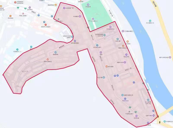 二、城關(guān)鎮(zhèn)區(qū)域:金都酒店--中醫(yī)院--商貿(mào)大街1巷東口--商貿(mào)大街4巷東口--祝爾慷廣場隔壁家屬樓(祝爾慷廣場南面)--商貿(mào)大街4巷西口--商貿(mào)大街1巷西口--南方商城--汽車站--金都酒店所覆蓋區(qū)域;城關(guān)鎮(zhèn)財政所--中央都會--外貿(mào)家屬樓--高家溝(馨安花園小區(qū))--黃虎西路全段(含衛(wèi)校路全段);麗都口--自強廣場--黨家壩加油站以北覆蓋區(qū)域繼續(xù)落實管控(詳見附圖),其他區(qū)域有序進行正常生產(chǎn)生活,落實常態(tài)化疫情防控措施。