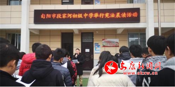 學(xué)校里,開展憲法晨讀,全體師生共同參與,同步跟讀憲法條款,讓學(xué)生通過學(xué)習(xí)憲法的基本原則和基本知識,感受憲法精神,體悟憲法威嚴,在校內(nèi)形成“積極宣傳憲法、尊崇憲法、維護憲法,弘揚憲法精神,樹立憲法權(quán)威,增強法治觀念”的新風(fēng)尚。