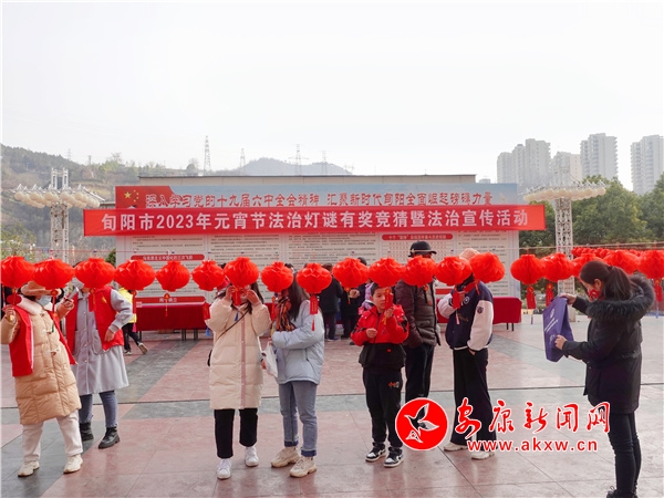 正月十三,旬陽市祝爾慷廣場,人潮涌動(dòng),熱鬧非凡。走近一看,原來是旬陽市正在舉辦2023年元宵節(jié)法治猜燈謎暨普法宣傳活動(dòng)。大紅燈籠高高掛,法治謎語迎風(fēng)飄;顒(dòng)現(xiàn)場,紅紅火火、喜氣洋洋,引得過往群眾駐足觀看、爭相競猜。