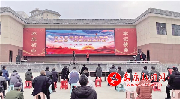 黨的二十大召開后以快板為主要表演形式的旬陽市黨的二十大精神文藝宣講隊(duì)走進(jìn)農(nóng)村走進(jìn)群眾,在村組院落、在廣場(chǎng)集市,通過表演快板《二十大精神指航向》《禮贊旬陽頌黨恩》、歌曲《黨的二十大精神放光芒》、舞蹈《二十大精神擂戰(zhàn)鼓》等節(jié)目,以群眾喜聞樂見的方式讓理論宣講“唱起來”“跳起來”“活起來”,把黨的二十大精神用群眾聽得懂、聽得進(jìn)、喜歡聽的方式“送入”尋常百姓家。、