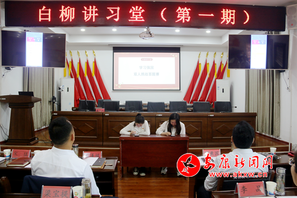 “青”戰(zhàn)擂臺(tái),增“智”促“干”。知識(shí)競賽以接龍問答和雙人對(duì)戰(zhàn)的形式開展。雙人對(duì)戰(zhàn)環(huán)節(jié)依托“學(xué)習(xí)強(qiáng)國”學(xué)習(xí)平臺(tái),對(duì)戰(zhàn)人員個(gè)個(gè)精神飽滿、沉著冷靜,10名參賽人員以扎實(shí)的知識(shí)儲(chǔ)備和機(jī)智精彩的應(yīng)答使得比分不分伯仲。接龍問答環(huán)節(jié),聚焦省委“三個(gè)年”活動(dòng)、旬陽市“3456”工作部署、“一強(qiáng)五好”等內(nèi)容展開,現(xiàn)場隨機(jī)抽號(hào)提問,抽中者快速反應(yīng)、準(zhǔn)確回答,緊張、刺激瞬間將活動(dòng)氛圍推向了高潮。