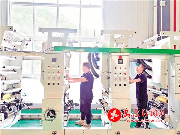 6月27日,在旬陽(yáng)市生物基可降解材料產(chǎn)業(yè)園,技術(shù)人員在安裝調(diào)試水墨印刷機(jī)。鄒一銘 攝