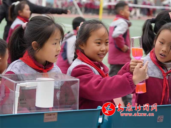 在各個科學實驗項目前,同學們駐足停留,認真觀察、反復操作,沉浸在知識的海洋與科技的奧秘中,操場上不時傳來陣陣驚嘆聲。“我最感興趣的是機器人,通過手柄遙控能讓機器人模仿奔跑跳躍,跟我們打招呼,真是太神奇了,我以后要更加努力地學習科學知識,探索更多的未知領(lǐng)域。”五年級一學生激動地說。