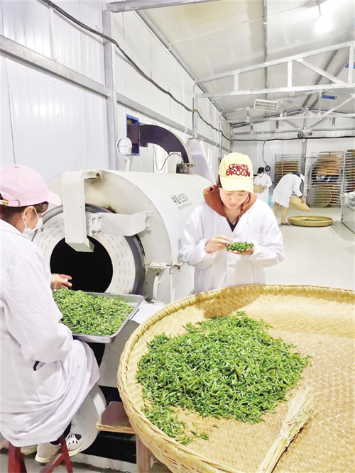 沿著九曲山路攀至絲鋪村五龍山,1200米的海拔高地,500畝生態(tài)茶園豁然舒展在眼前。茶農(nóng)們星羅棋布地穿梭在茶園,夏茶葉紛紛從茶樹間跌落。“高山茶回甘足,這片云海就是天然保鮮庫。”村支部書記蔡家文輕捻茶葉,陣陣清香沁人心脾。旬陽五龍山農(nóng)民種植專業(yè)合作社負(fù)責(zé)人王志富打開茶廠卷簾門,生產(chǎn)線熱氣蒸騰。“去年我們收購了3000公斤鮮葉,加工了1000公斤干茶,產(chǎn)值達(dá)到30萬元,輻射帶動(dòng)周邊村民端穩(wěn)飯碗。”
