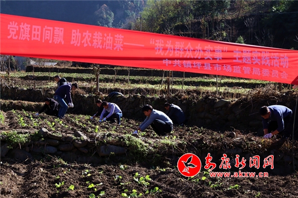 本網(wǎng)訊(通訊員 歐佩)11月13日,鎮(zhèn)坪縣市場監(jiān)管局黨委結(jié)合“我為群眾辦實事”實踐活動,組織全系統(tǒng)40余名黨員干部利用周末時間到村開展“黨旗田間飄,助農(nóng)栽油菜”主題活動,凝聚合力、發(fā)揮作用,為油菜種植生產(chǎn)保駕護航。