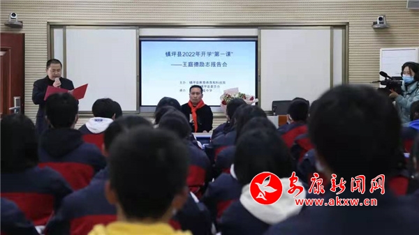 本網(wǎng)訊(通訊員 廖香妮)2月21日中午,由鎮(zhèn)坪縣教育體育和科技局、共青團鎮(zhèn)坪縣委員會主辦,鎮(zhèn)坪縣初級中學承辦的鎮(zhèn)坪縣2022年開學第一課——王庭德勵志報告會在鎮(zhèn)坪縣初級中學五樓會議室舉行,全縣15所中小學校5000多名學生線上收看活動直播,報告會由縣教育體育和科技局黨委書記、局長陸翔主持。