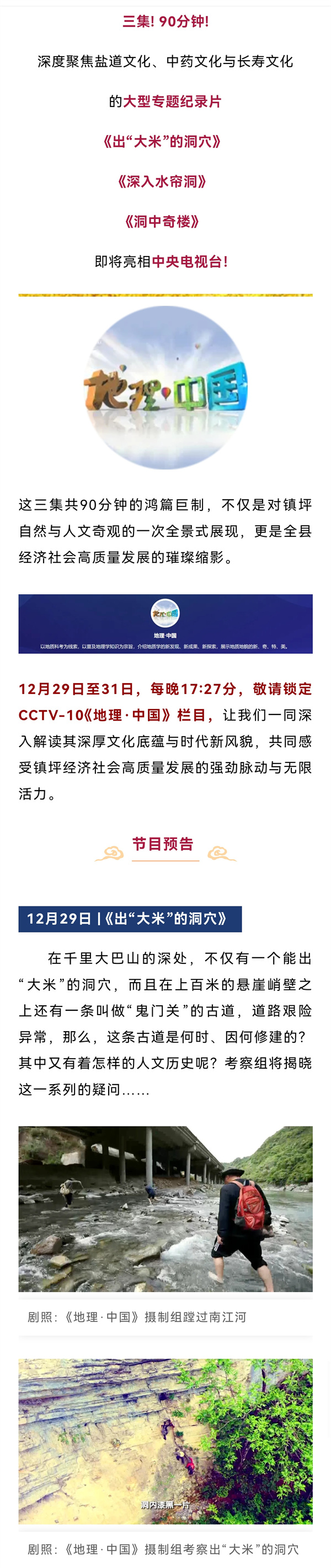 鎮(zhèn)坪再添重頭大戲 | 三集大型紀(jì)錄片亮相中央電視臺