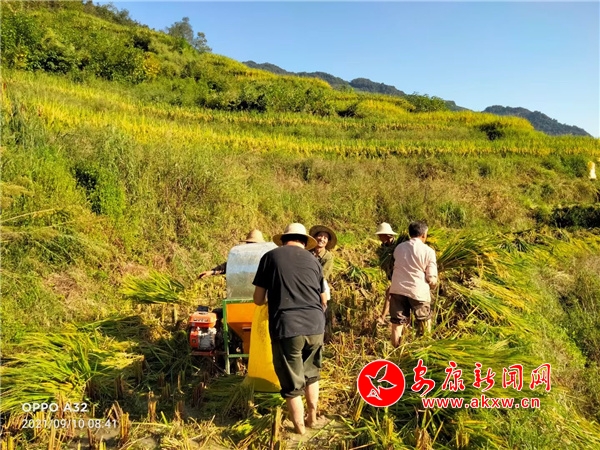 本網(wǎng)訊(通訊員 陳萌茹)稻谷收割季處處豐收景。金秋九月,秋風(fēng)送爽,正是水稻收獲的季節(jié)。紫陽縣洄水鎮(zhèn)連橋村的稻田地里,成片黃澄澄的稻田延至天際。近日,筆者來到紫陽縣洄水鎮(zhèn)連橋村,看到大片的水稻已經(jīng)開始收割。