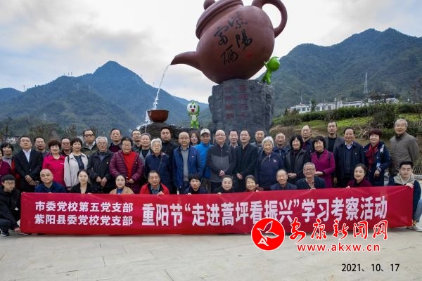 本網(wǎng)訊(通訊員 路永婷)金秋十月,重陽(yáng)之際,市委黨校第五黨支部聯(lián)合紫陽(yáng)縣委黨校黨支部,來(lái)到紫陽(yáng)縣蒿坪鎮(zhèn)開(kāi)展重陽(yáng)節(jié)“走進(jìn)蒿坪看振興”學(xué)習(xí)考察活動(dòng),市縣黨校三十余名退休干部職工參加。