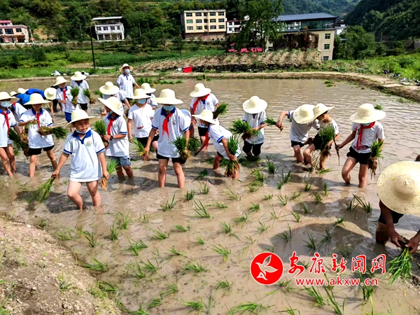本網(wǎng)訊(通訊員 牟楓 劉成軍)6月7日,紫陽縣高橋鎮(zhèn)中心小學(xué)392名學(xué)生在老師的帶領(lǐng)下,伴隨著初夏氣息,嗅著撲鼻的泥土芳香,整齊有序地來到該縣夢紫陽中小學(xué)勞動實踐基地,開展“知農(nóng)事,學(xué)農(nóng)耕,惜農(nóng)食”插秧勞動實踐活動。