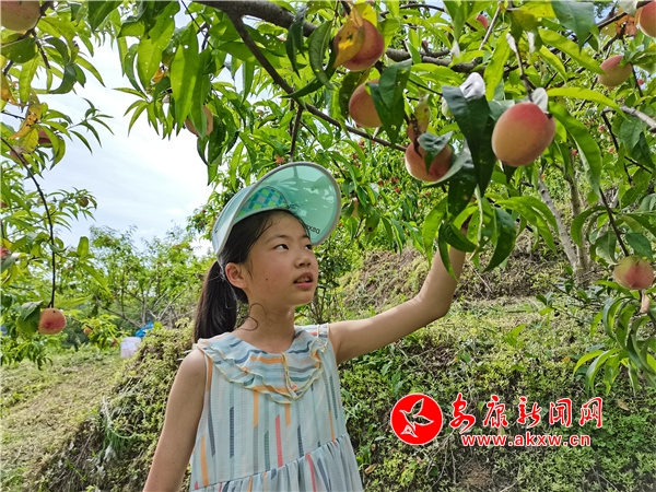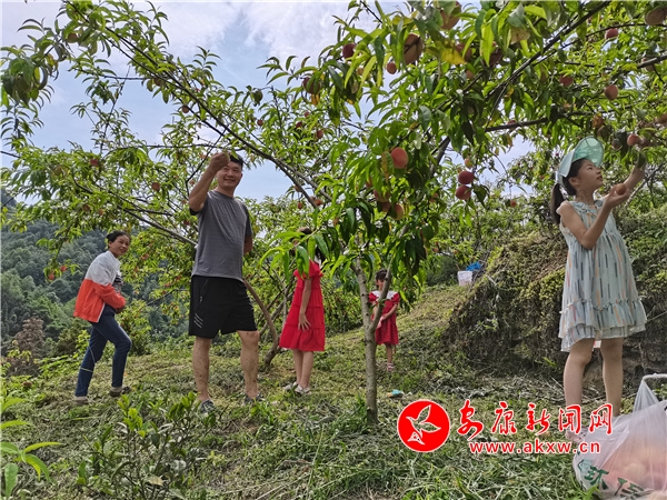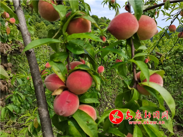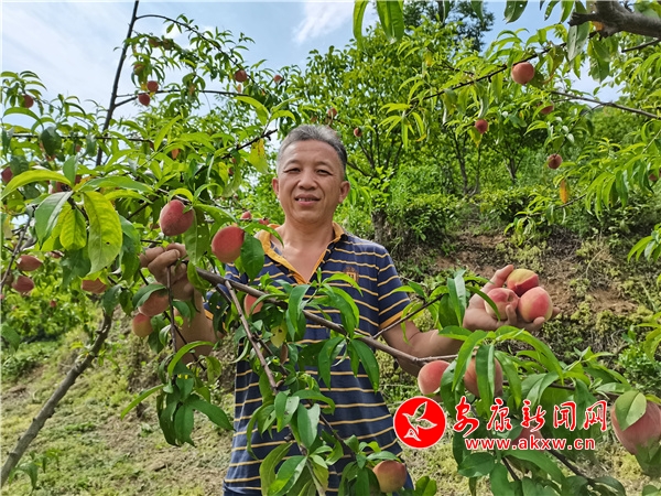 “當(dāng)下正是蜜桃的最佳采摘期,我們這里生態(tài)好,植被覆蓋率高、水資源豐富,氣候適宜,在這樣自然條件下生長(zhǎng)出來(lái)的果子是純天然、無(wú)污染、原生態(tài)的。你看,這些果子顆顆飽滿,個(gè)頭均勻,肉厚核小,口感香甜多汁,且采摘持續(xù)時(shí)間長(zhǎng),可以采摘到七月下旬”。為了讓大家吃到品質(zhì)好的桃,我和妻子參加了鎮(zhèn)農(nóng)綜站牽頭的種植、養(yǎng)殖培訓(xùn),在他們的指導(dǎo)下熟練的掌握了種養(yǎng)技術(shù)。通過(guò)控制掛果密度讓每個(gè)果子充分享受陽(yáng)光和養(yǎng)分,這樣才能結(jié)出又甜又好的果子。”種植大戶胡小飛介紹說(shuō)。