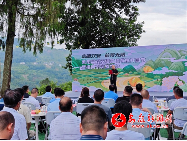 本網(wǎng)訊(通訊員 汪玉梅)7月6日,紫陽(yáng)縣雙安鎮(zhèn)的富硒黃桃開(kāi)園節(jié)暨招商引資簽約會(huì)在白馬村舉行,來(lái)自縣內(nèi)外的游客嘉賓們,共同見(jiàn)證了這場(chǎng)夏日盛事。