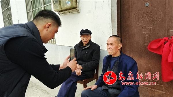 吳勇口中的五保老人叫張顯雙,居住在核桃坪村三組,今年已有八十高齡,家中除了老伴還有一個五十多歲患精神性疾病的兒子,由于全家沒有勞動能力所以享受著國家的五保政策,一家人也算過得其樂融融,日常,一家人也會幫助鄰里做些簡單農(nóng)務(wù)打發(fā)時間。聽說最近社保需要在手機(jī)上認(rèn)證,把一家人急得夠嗆,沒想到正為此事發(fā)愁,吳勇就走到了房門。“‘張叔,吃了午飯沒有,最近身體還好吧。’‘正愁有事找你你就來了,趕緊給我們一家子認(rèn)證一哈。’”兩人在院子里經(jīng)過簡單寒暄,吳勇便掏出手機(jī)細(xì)心地為老人開展認(rèn)證服務(wù),“張叔,向左轉(zhuǎn)個頭,再向右轉(zhuǎn)哈,再眨個眼睛”只見吳勇在嫻熟的操作中就完成了一家人的認(rèn)證工作,而老人爽朗的笑聲中無不表露出對干部細(xì)心工作的認(rèn)同。