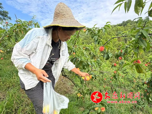 果園負(fù)責(zé)人胡小飛是王家河村的致富帶頭人,已種桃6年多。憑著成熟的種植和管理經(jīng)驗,他家的桃子色澤鮮艷、汁多肉厚、口感脆甜,深受游客們的青睞。“今年雨水少,桃子雖然個頭小,但味道特別甜”,楊秀榮穿梭在桃園里邊摘桃邊介紹道。