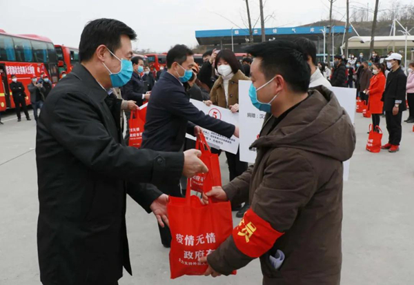 郭青在歡送儀式講話中指出,受新冠肺炎疫情影響,很多企業(yè)一度停工停產(chǎn)、復(fù)工延長,加之省際客運班線尚未完全開通,致使我市大量外出務(wù)工人員無法及時返崗就業(yè)。群眾的揪心事就是政府的操心事,群眾的困難就是政府的責任,通過開通點對點直達包車等方式,使廣大外出務(wù)工人員能夠放心外出、安全返崗,早一點實現(xiàn)致富增收,家人少一點路途牽掛。