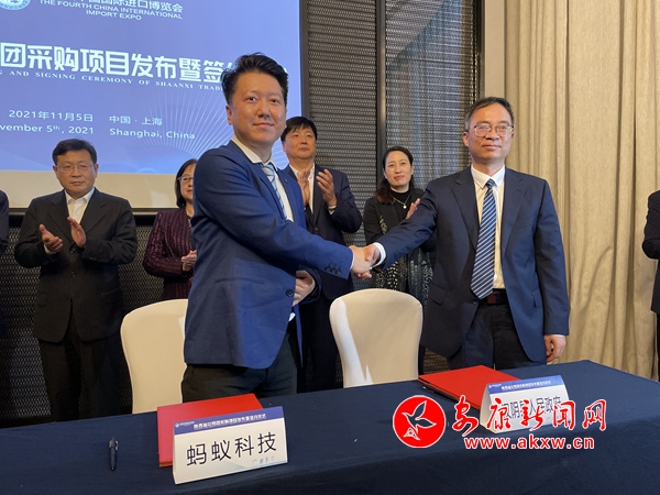 進(jìn)博會首日,楊淼出席“陜西省交易團(tuán)采購項(xiàng)目發(fā)布暨簽約儀式”并見簽。漢陰縣人民政府與螞蟻區(qū)塊鏈科技(上海)有限公司簽訂合作協(xié)議,螞蟻區(qū)塊鏈科技(上海)有限公司將與漢陰縣開展農(nóng)業(yè)產(chǎn)業(yè)全面深度合作,簽約打造“漢陰數(shù)鄉(xiāng)鏈”,共同探索開展數(shù)字鄉(xiāng)村建設(shè)規(guī)劃,推進(jìn)漢陰縣農(nóng)業(yè)農(nóng)村現(xiàn)代化和農(nóng)業(yè)經(jīng)濟(jì)高質(zhì)量發(fā)展。